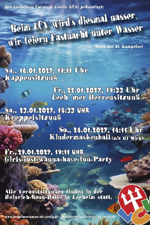 wir begrüßen Sie ganz herzlich auf der Internetseite des "Leeheimer Carneval Verein", einer Abteilung des FC Germania 1907 Leeheim e.V..